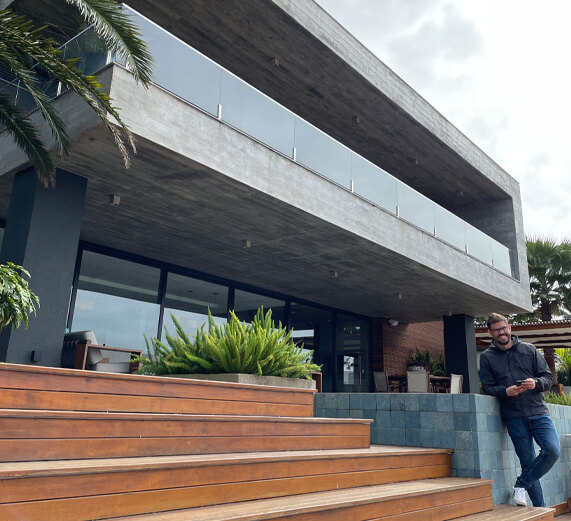 João Martin é um arquiteto gaúcho com 20 anos de formado, que além de estar a frente da Martin Arquitetura (escritório referência em arquitetura residencial) também possui uma construtora que já entregou mais de 41 casas de alto padrão tendo o concreto aparente como principal protagonista.